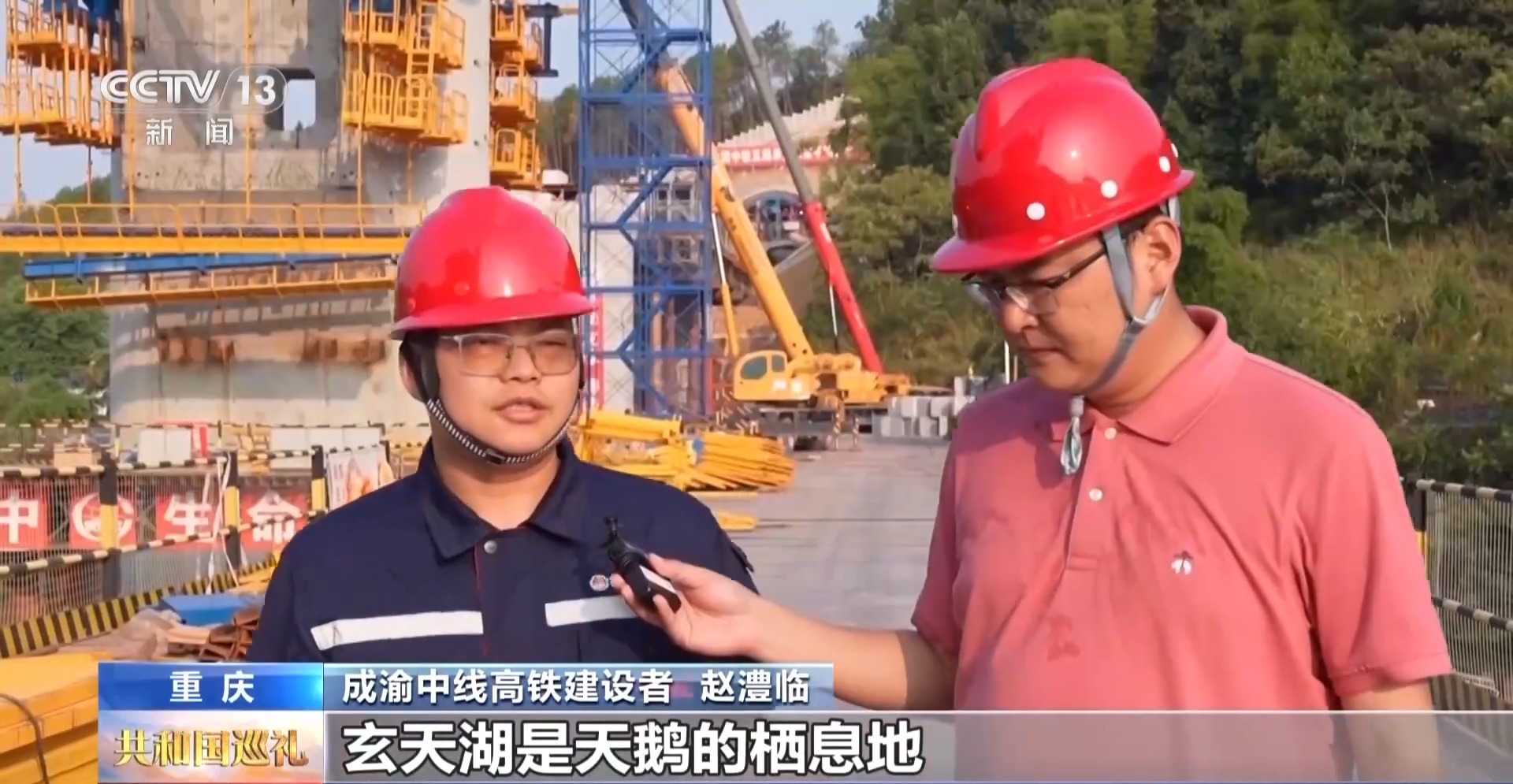 成渝中线高铁成就者 赵澧临:玄天湖是天鹅的栖息地,对环境保护条款相配高,为了最猛进程减少对环境保护的影响,咱们在施工历程中选择了双壁钢围堰,用于水中施工。这个桥的桩基深刻水下42米,终点于十多层楼。